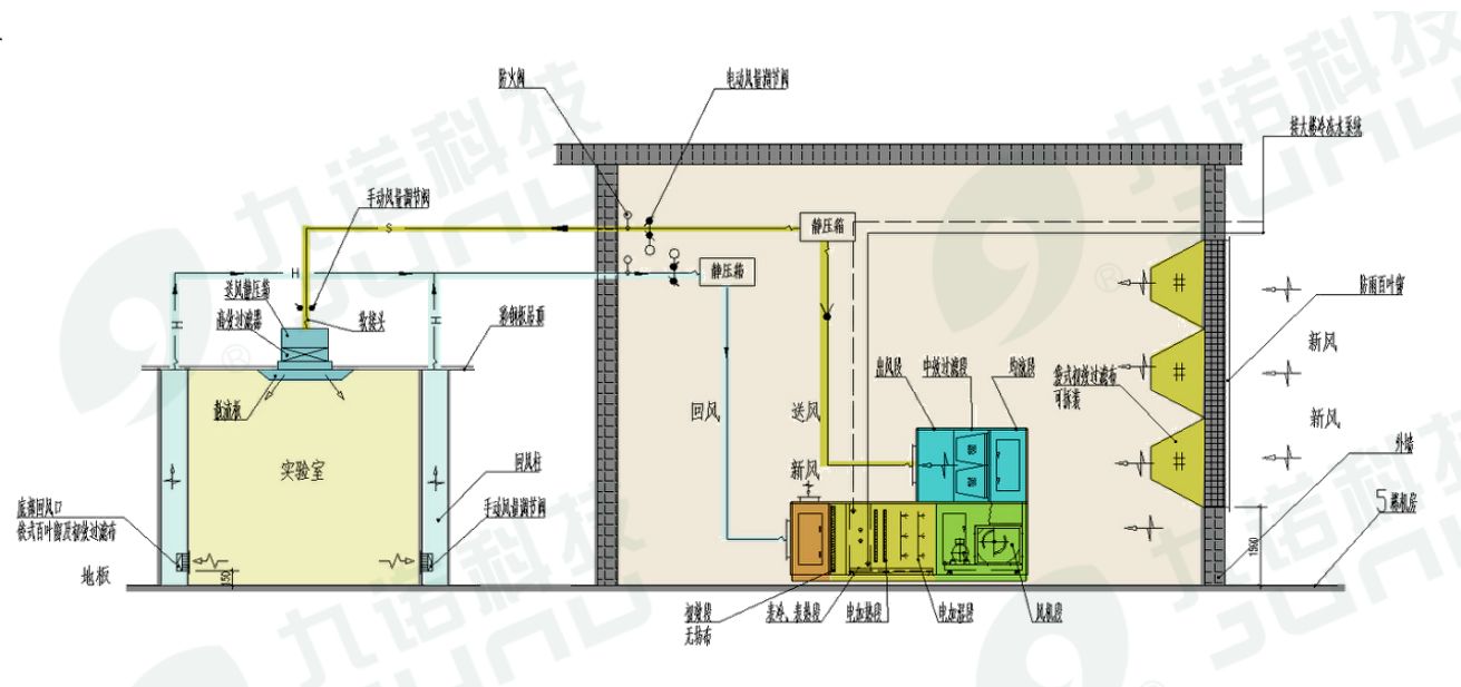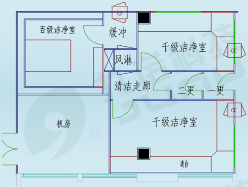 控制交叉感染,空调通风系统的设计,必须尽可能地使空气从高清洁区流向一般清洁区在流向非清洁区,这是众所周知的原则。但是如何稳定的维持不同区域的空气压差,确保上述原则,并不是件容易的事,要对设计、建造、调试、维护和监测多个环节认真处理才有可能达到此目的。当然维持各区域空气压差所才用的基本方法,无一例外都是靠送风、回风、排风和渗漏风等所维持某种状态的动态平衡。设计与建造之所以重要,因为从保证各区域合理的空气压力分布的角度,建筑构造形式,空调方式及调节与控制方法的选取十分关键。可靠和灵便的风量调节装置及自动控制系统,是压差与气流流向的重要保障,因为新风、送风、回风、排风通路上都存在某些变数,影响系统各部分的风量。一个设计完整的空调系统起初调节与监测等环节,是其功能充分发挥的基本保证。